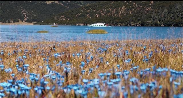据了解,生长于高海拔湖边、草甸、河滩旁的蓝玉簪龙胆花,因为贴地而生,成为幽静湖景的点缀,特别是在秋冬季,在阳光下迎风摇曳,为一片片枯黄的草丛带来灵动生机。其深蓝色的花瓣像极了高原天空的深邃、纯净,其花语为“高洁、坚韧”,象征不染世俗的纯粹之美。