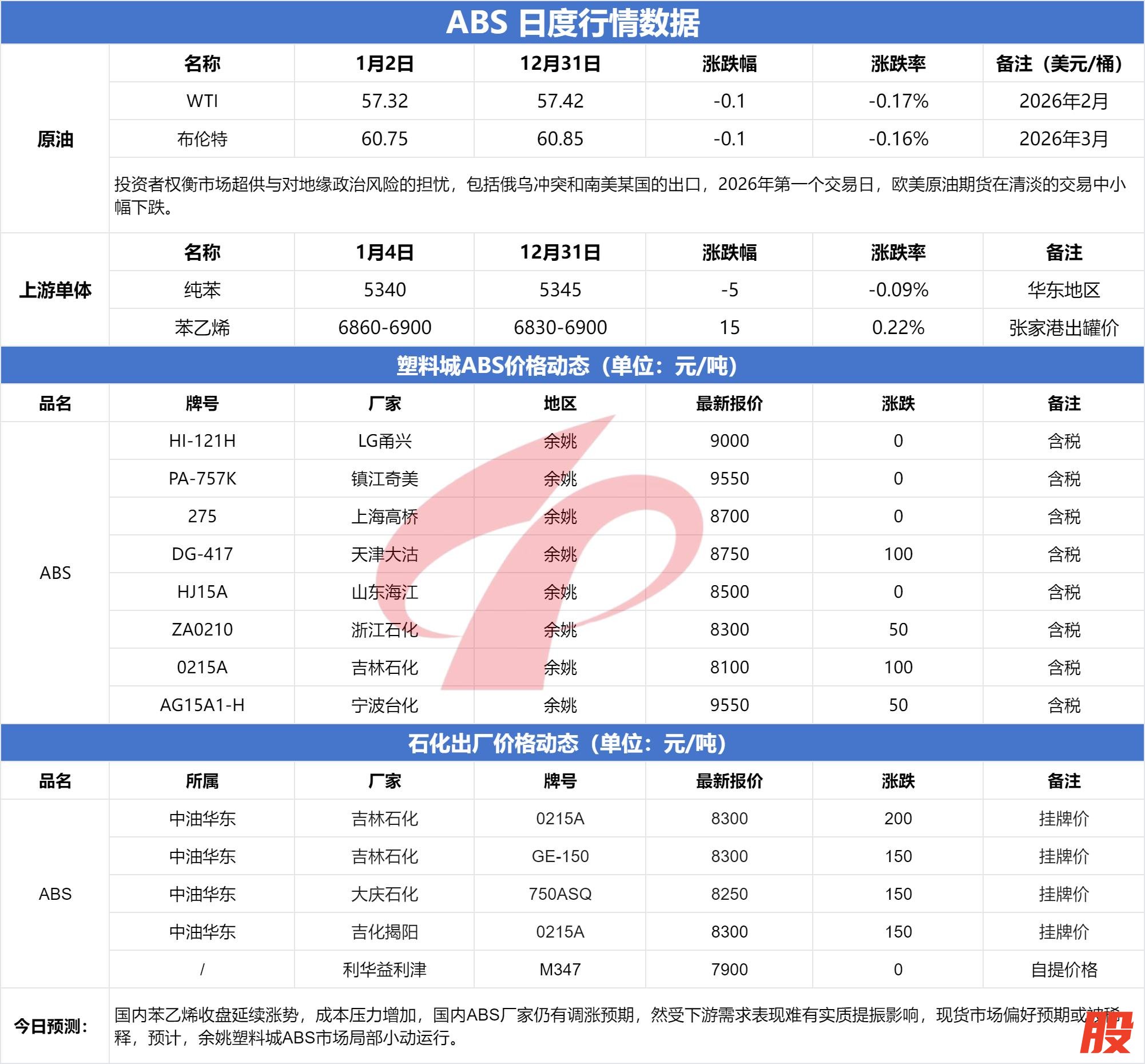 牛壹佰 塑料行情14今日ABS一片红! 最高涨200元!
